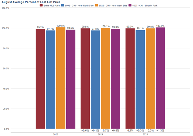 • Lincoln Park: sales close on average above asking price through August 2025.
